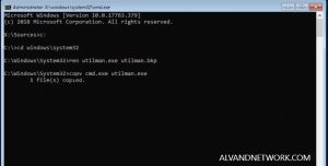 6. با ایجاد این تغییرات شما دسترسی کامل به ادمین را خواهید داشت. تنها کافیست کلید های ترکیبی Ctrl+ Alt+ del را با هم فشار داده و سپس روی گزینه Utility Manager کلیک کرده تا پنجره دستورات(command prompt ) برای شما باز شود. سپس با وارد کردن دستور زیر به قسمت مورد نظر وارد خواهید شد و میتوانید پسورد جدید را اعمال کنید.